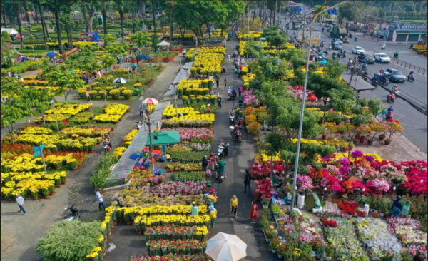 田舎からホーチミンにテト飾り花を運んできて販売の写真