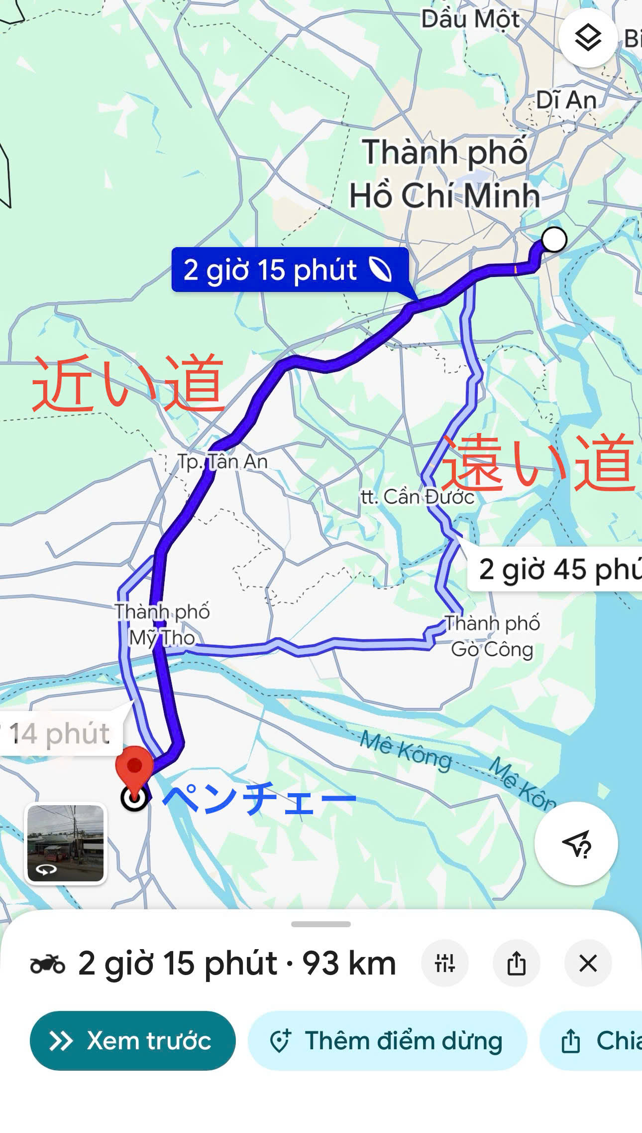 通常はバイクでホーチミンからペンチェー(私の田舎の名前)までは
