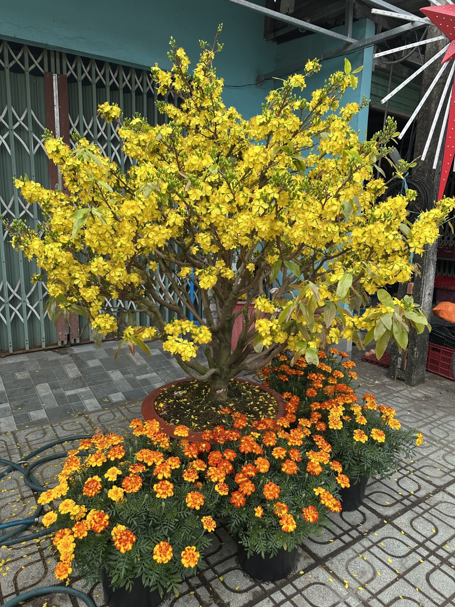 田舎からホーチミンにテト飾り花を運んできて販売の写真