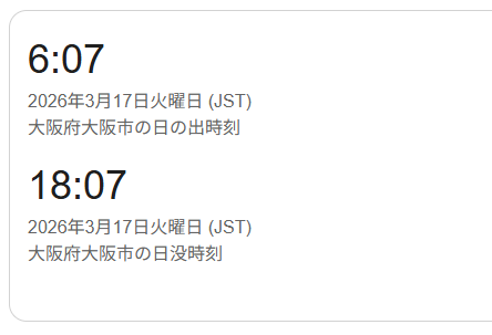 本日3月17日は、ちょうど昼と夜が12時間ずつの日のようです。